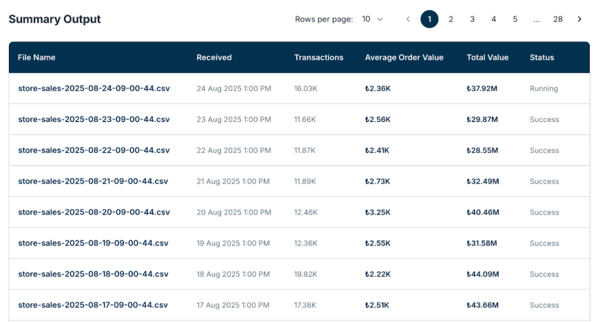 Running→ Dosya işlenmeye devam ediyorSuccess→ İşleme süreci başarıyla tamamlandı